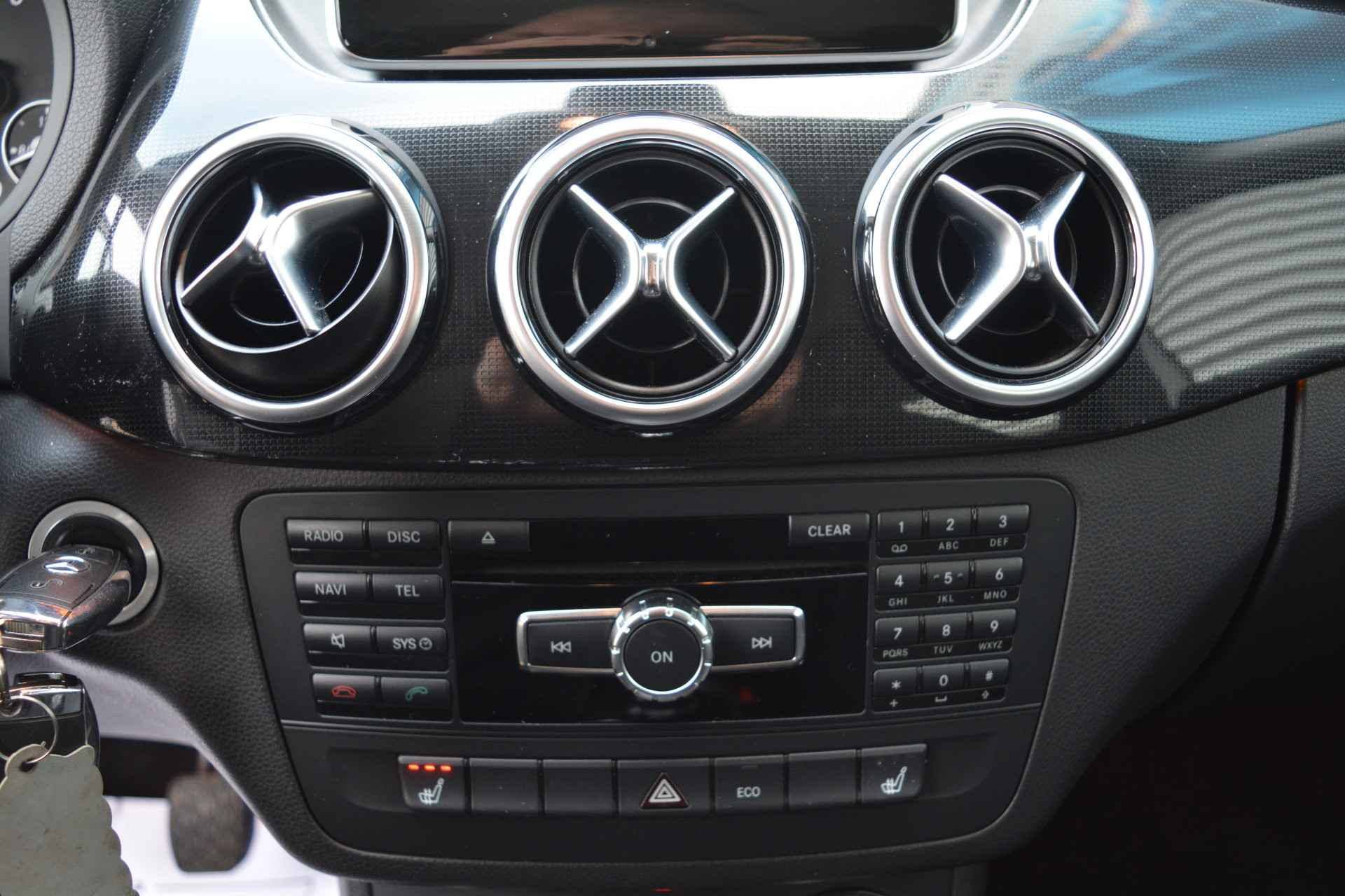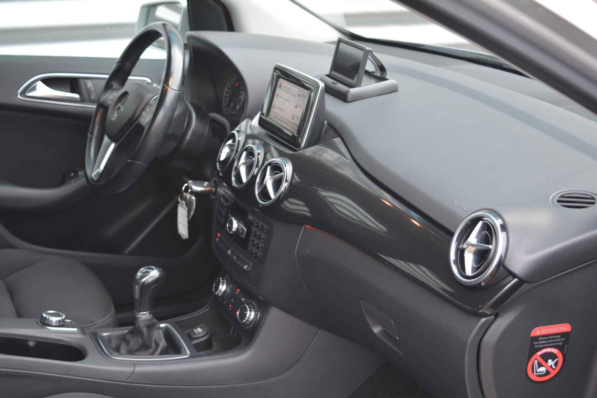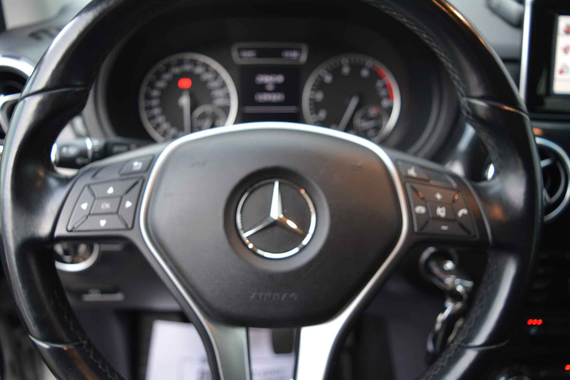 Het navigatiesysteem brengt u soepel en vlot naar uw bestemming. Ook over uw schouder ziet u onderweg niet alles wat er aan de achterzijde gebeurt. Daarom heeft deze Mercedes-Benz B-klasse een achteropkomend verkeer waarschuwing. Andere zender, andere muziek, meer volume? Met de audiobediening op het stuur is het makkelijk en veilig geregeld. Deze auto heeft airconditioning aan boord. Ook automatisch dimmende buitenspiegels, centrale deurvergrendeling met afstandsbediening, boordcomputer en verstelbaar stuur horen tot de voorzieningen op deze auto.
