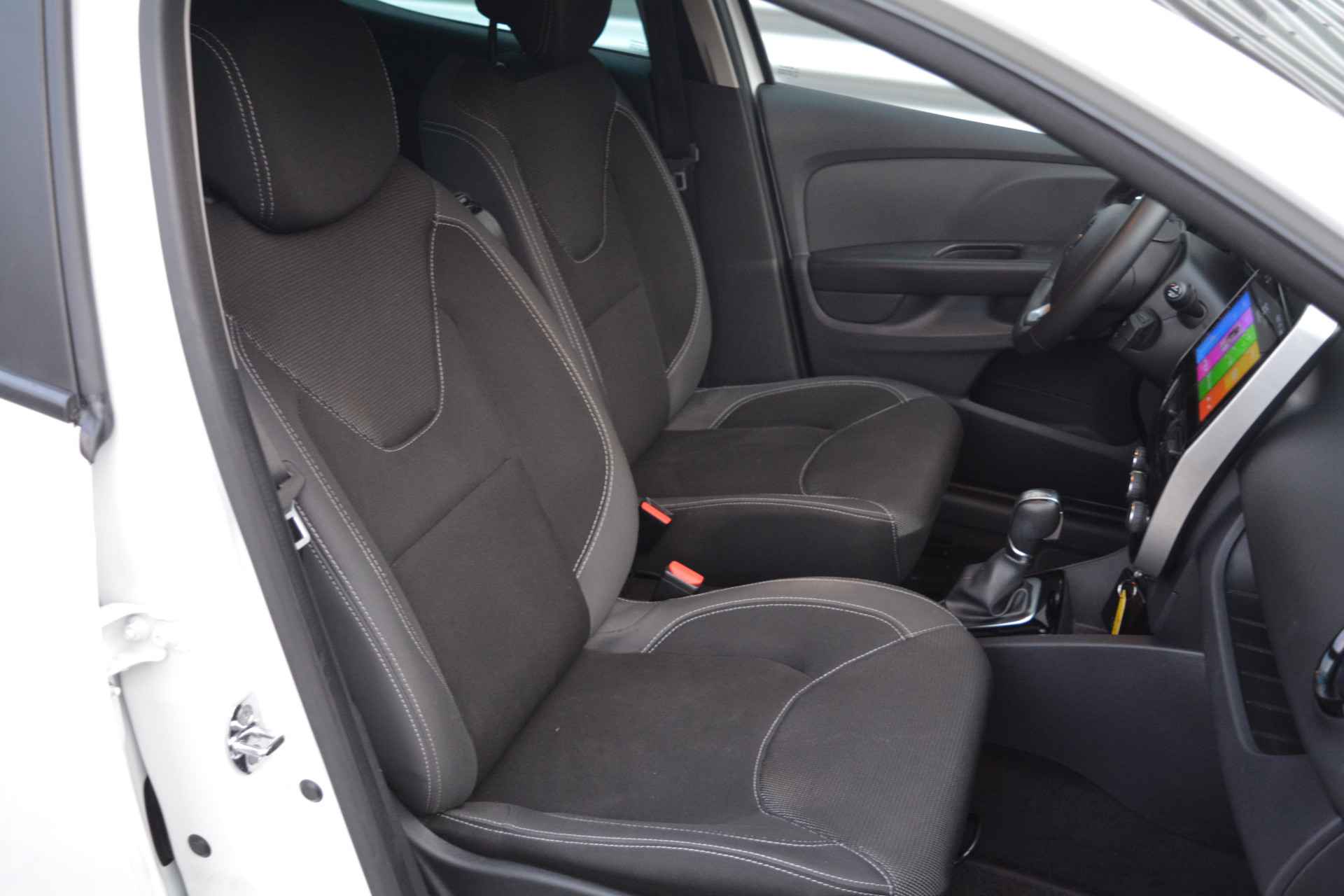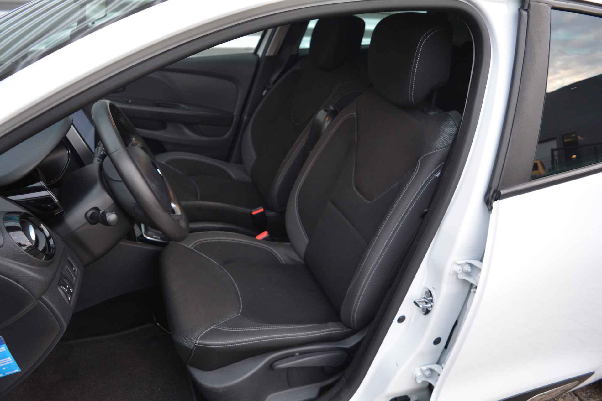 Groot is-ie niet. Om te zien dan. Want verder is er nergens op ingeleverd. Nou ja, het brandstofverbruik. En de wegenbelasting. En de verzekering. En het onderhoud. Hij rijdt lekker, deze Renault. Pittig ook, met dank aan de compacte en zuinige motor. Bij de rijke uitrusting horen ook 16 inch lichtmetalen velgen, LED-dagrijverlichting, donker getint glas achter, in delen neerklapbare achterbank en snelheidsafhankelijke stuurbekrachtiging.